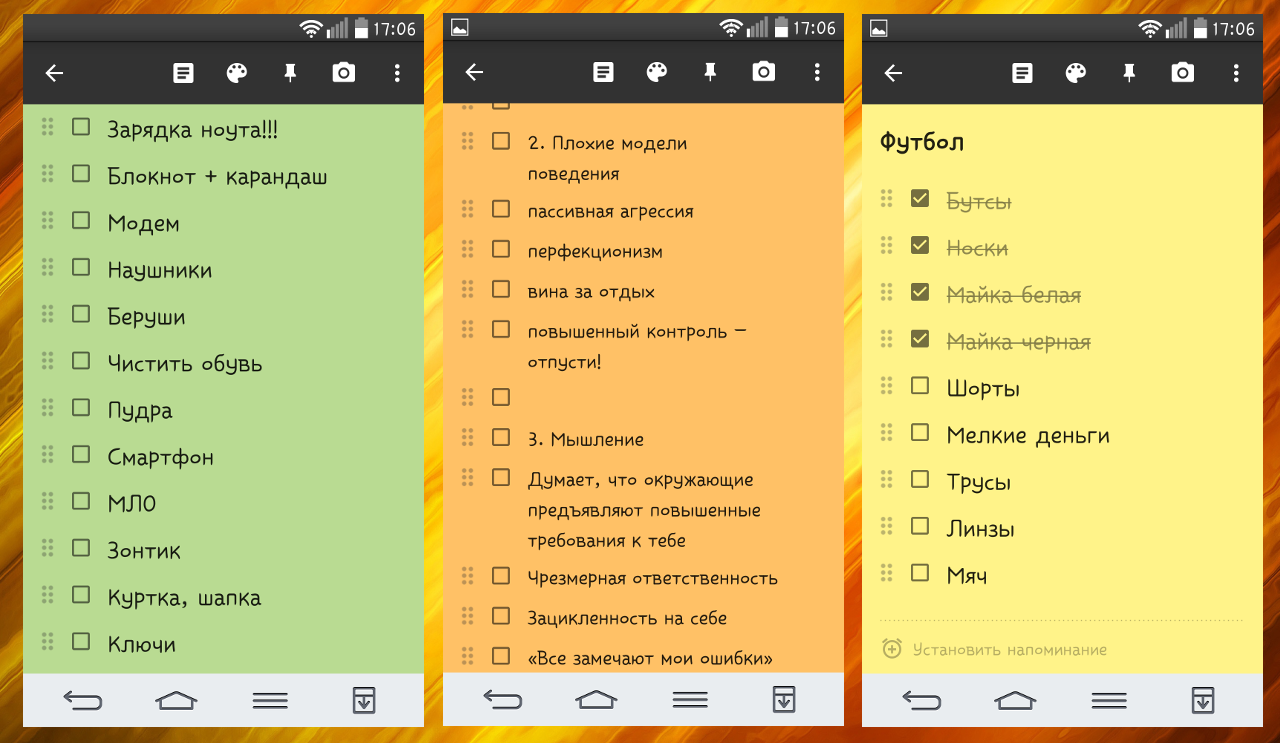 Мои чек-листы на смартфоне: