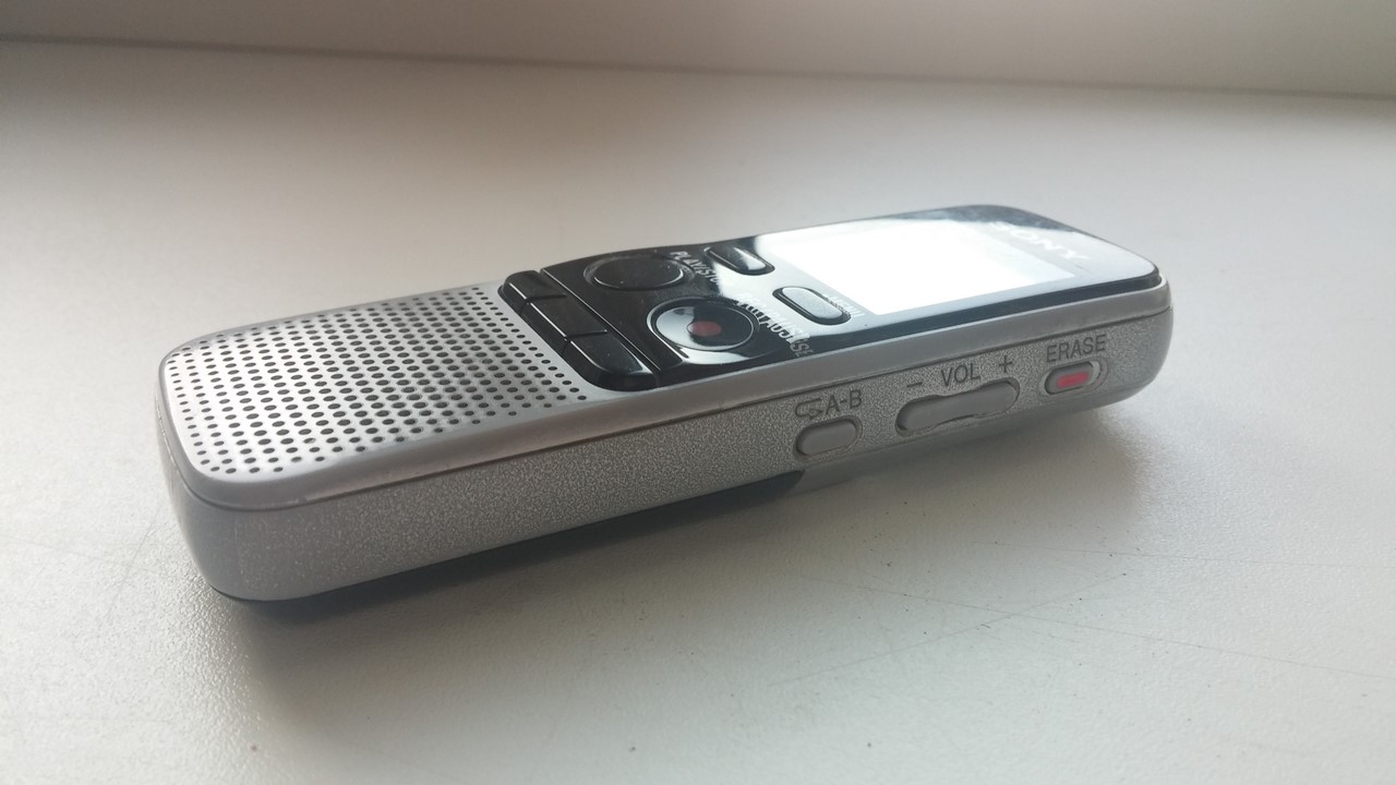 Недорогая модель. Стоил около 1500 рублей. Со мной уже 2 года. Как я уже писал, я не расстаюсь с ним никогда. За это время я не устаю ему радоваться — чувствуется, что Sony проектирует диктофоны долгие десятилетия. Каждый выступ, кнопка или «пипка» выполнены так, что чувствуешь: их тестировали, тестировали, тестировали.