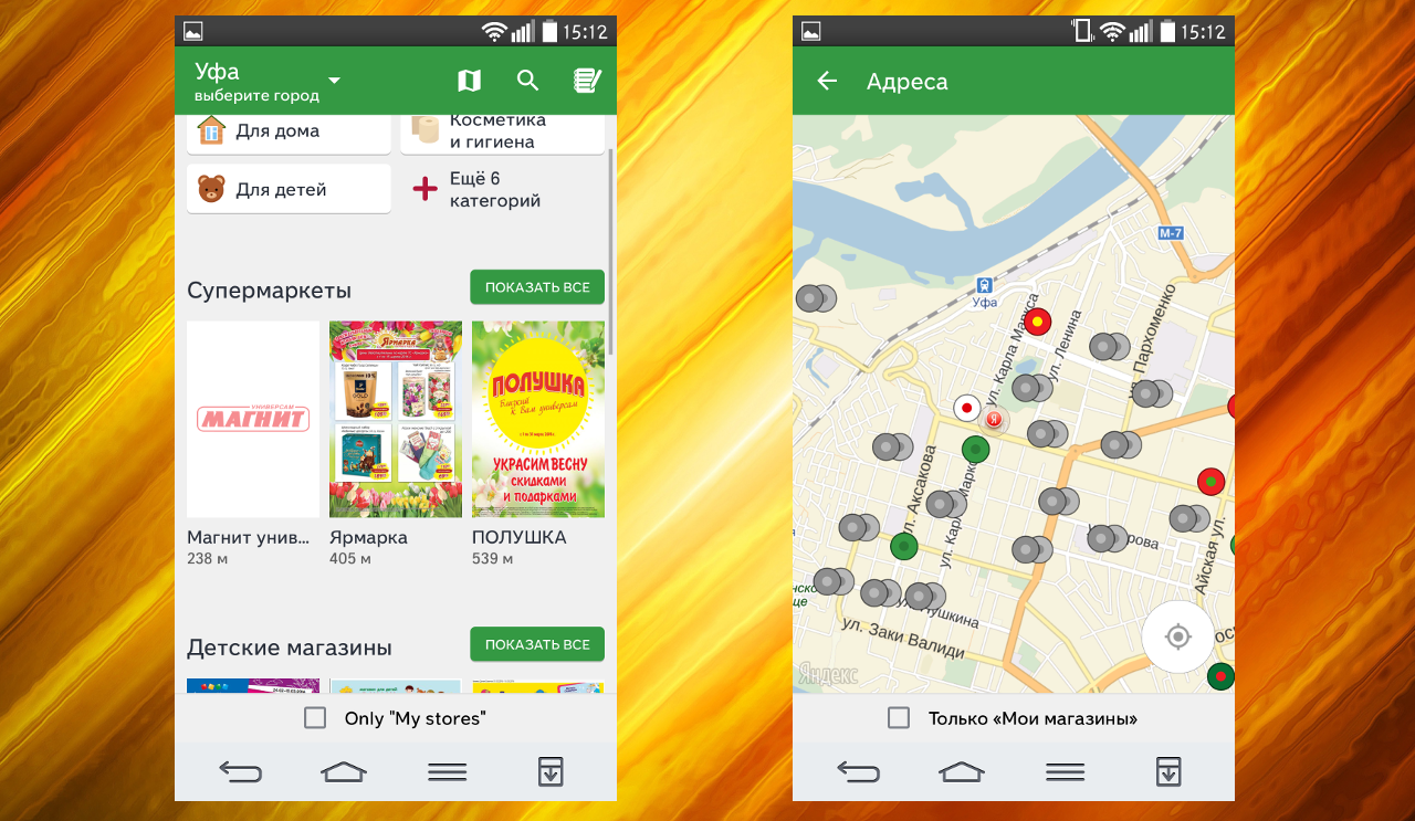 Еще недавно я бы ответил, что только крупные федеральные сети типа «Магнит», «Пятерочка», «Перекресток», но… буквально месяц назад они добавили две оставшиеся крупные уфимские сети — Матрица и Байрам, и теперь они покрывают вообще всю Уфу, кроме совсем небольших магазинов.