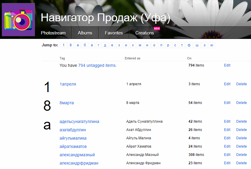 Например, выбираем тег «айратхаматов» и выводятся все фотографии с Айратом, нашим постоянным клиентом: