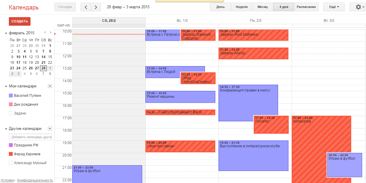 Или вы — директор крупной компании. Ваше расписание должны видеть все сотрудники, некоторые партнёры, а также родные и близкие. И это расписание при этом постоянно меняется.