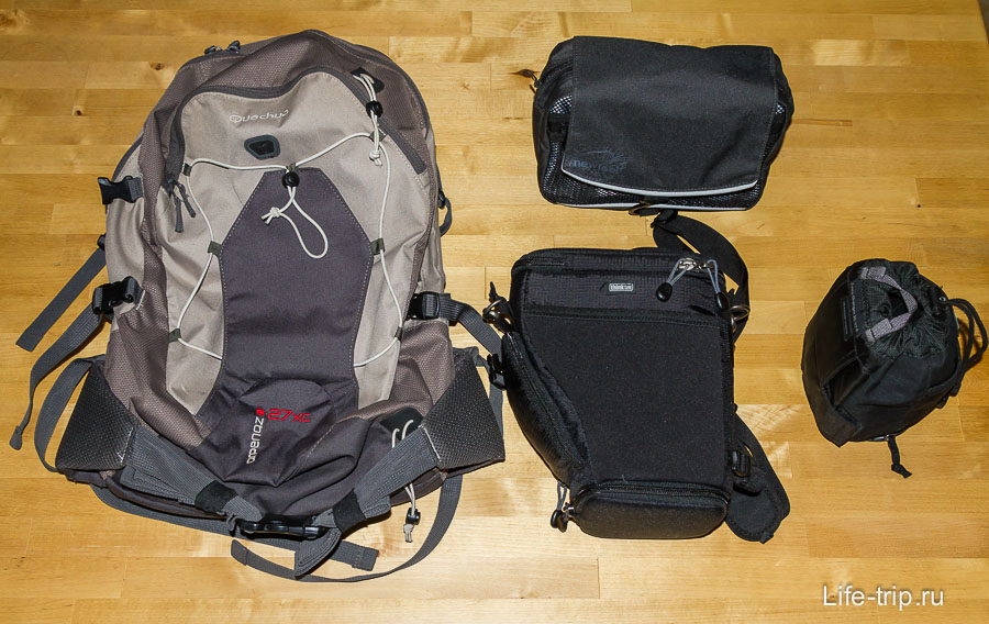 И вот в этот рюкзак влезают макбук, камера, экшн-камера, пауэрбанк (прим. Фарида – Олег писал про это), зарядки, штатив и немного одежды.