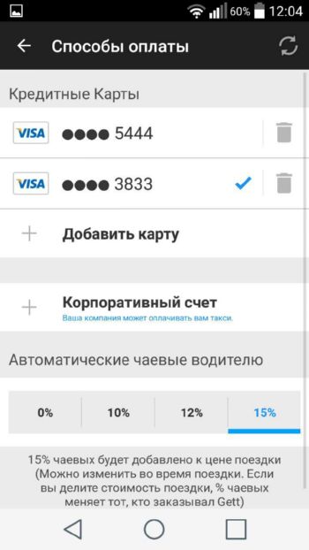 Внизу вы можете задать чаевые водителю. Я выставил 15%, потому что мои поездки почти всегда не очень выгодные для водителя.