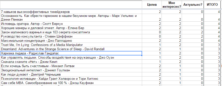 Третий параметр – актуальность для меня в данный момент.