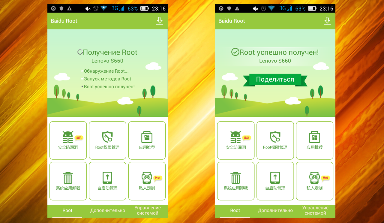 Именно так, приложение Baidu Root, написанное кудесниками из Поднебесной. Это самое популярное приложение для получения рута, поэтому я верю, что в нем нет вирусов. Качать его лучше, например, с 4pda.