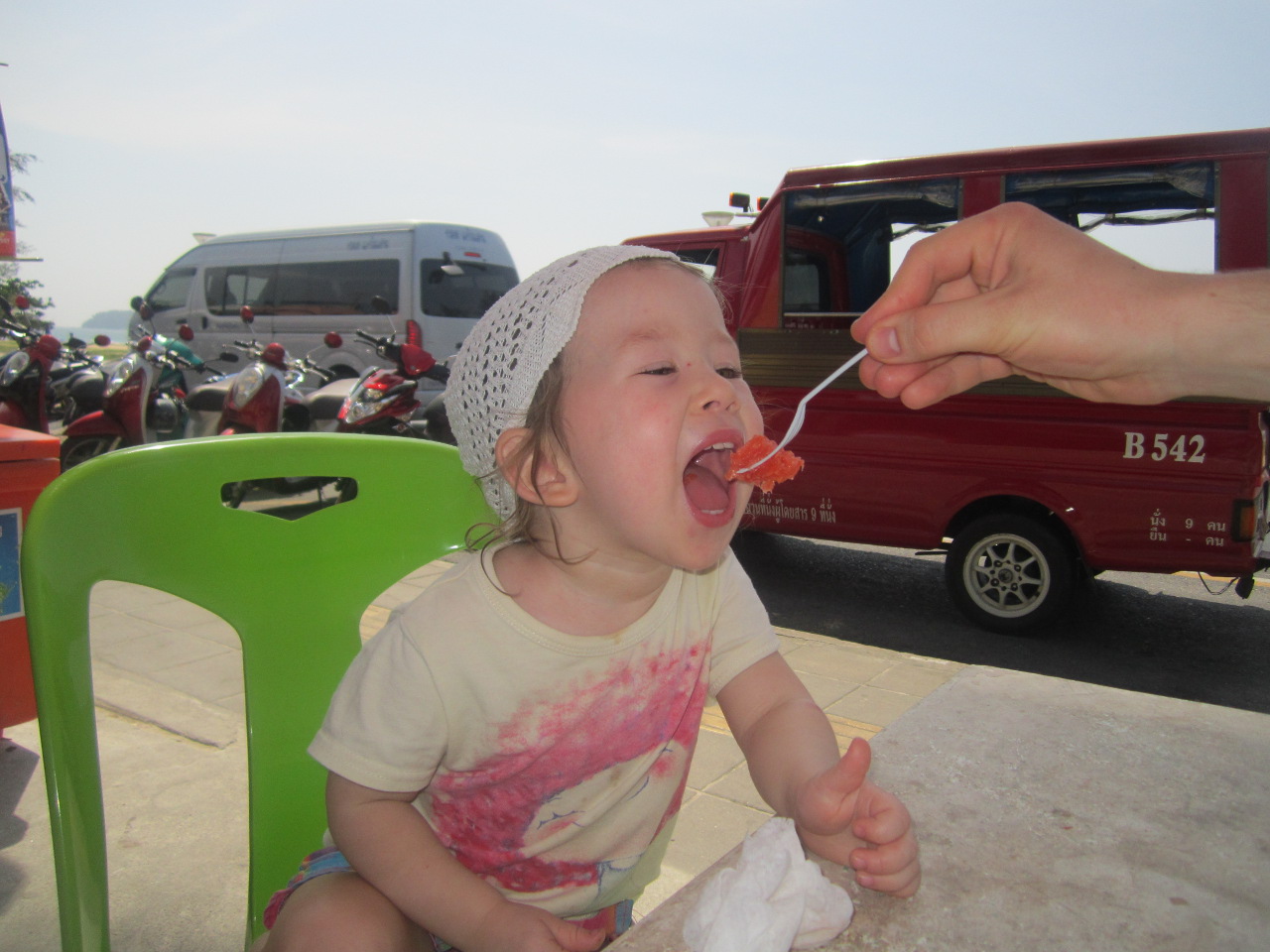 На улице ели буквально пару раз. Потом страховались и сами мыли и чистили фрукты