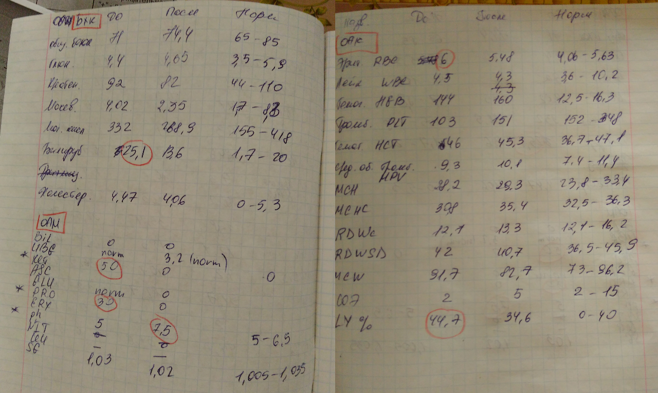 Как и обещал, я сдал анализы до и после: ОАК, Биохимию и ОАМ.