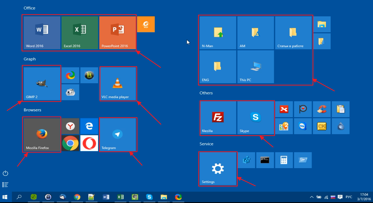 - Я поместил туда все программы, сервисы и папки, которые часто использую.