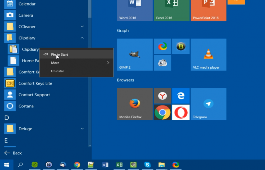 Чтобы добавить программу в меню «Пуск», просто прикалываем ее: