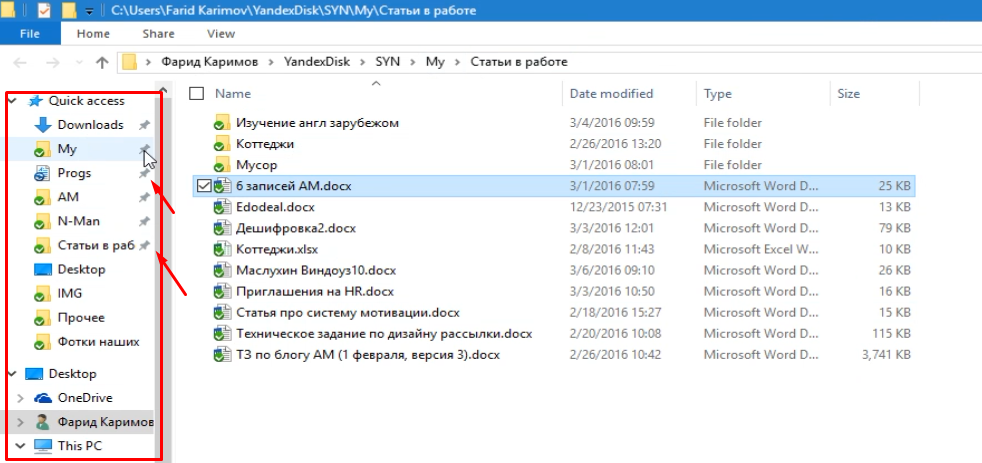 Или с Диспетчером файлов. Я прикрепил сбоку все частые папки: